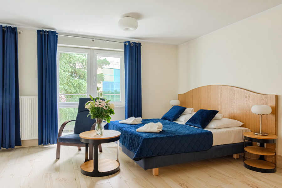 Pokoje LUDWIK to 105 pokoi jednoosobowych z szerokimi łóżkami małżeńskimi (1,4 m szerokości), z których mogą również korzystać dwie osoby.