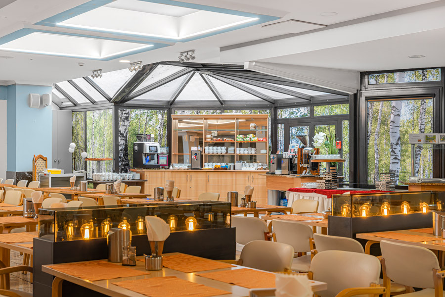 - pełne wyżywienie (wszystkie posiłki w formie szwedzkiego stołu). Istnieje możliwość wyboru pobytu z dowolną ilością posiłków oraz wyboru diety