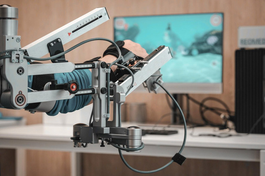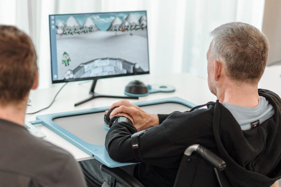 Bimeo - Urządzenie wykorzystywane do rehabilitacji kończyn górnych w chorobach neurologicznych i ortopedycznych. Dzięki wsparciu wirtualnej rzeczywistości opartej na zadaniach życia codziennego pacjenci uczą się nowych wzorców ruchowych, poprawiają motorykę i szybciej odzyskują sprawność.