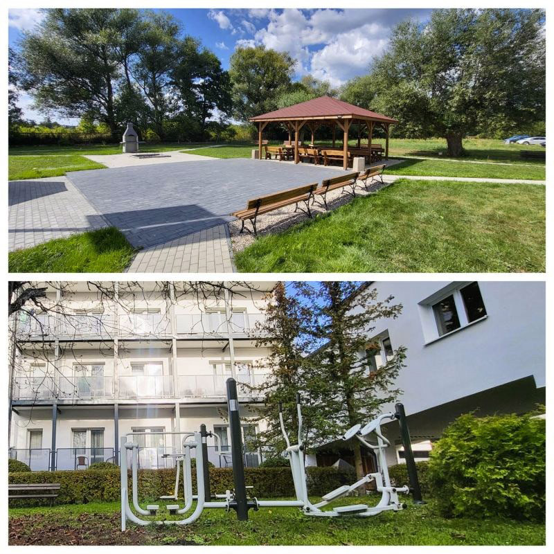 Zaciszne położenie obiektu, rozległy i ogrodzony teren gwarantują spokojny i odprężający pobyt.